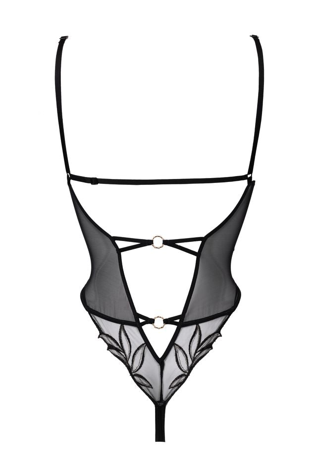 This transparent tulle body plays with the codes of seduction thanks to its dizzying cutouts and its floral embroidery that enhances the curves.